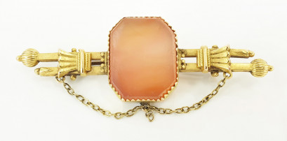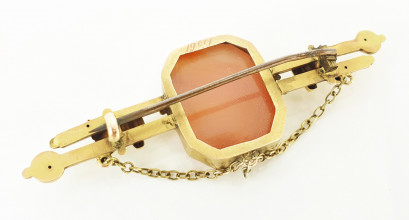 Lot Description:A Victorian 9ct Gold and Carnelian Brooch