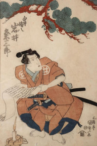 Nishiki-e, The Actor Iwai Hanjiro as Shiroi Gonpachi Artist - Signed Gototei Kunisada Utagawa Kunisada I (Toyokuni III) (Japanese, 1786-1864) c.1830's, Publisher: Matsumura Yahei, Kiwame: Approved Seal, 34 x 23cm (print), 63 cm x 43cm (frame) -