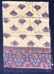Lot Description:Vakko, Turkey: Black, Gold & Red Polka Dot Jacquard Ground, Paisley Print Silk Scarf
