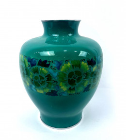 Lot Description:A Large Japanese, Ginbari Emerald Cloisonne Vase Depicting Central Chrysanthemum Motifs