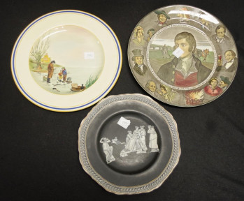 including: a Pratt classical decorated plate; a Mintons 'Picture' plate; and a Royal Doulton 'Burns' plate, D3397. -