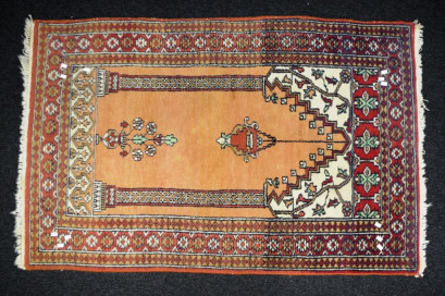 in apricot and black tones (faded), 128cm X 82cm approx -
