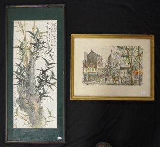 Chromolithograph on paper, from the original watercolour series, 21cm x 32cm along with Chinese bamboo watercolour, 56cm x 22cm -
