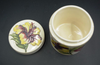 Lot Description:Moorcroft 'Hibiscus' lidded jar