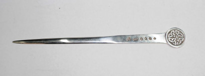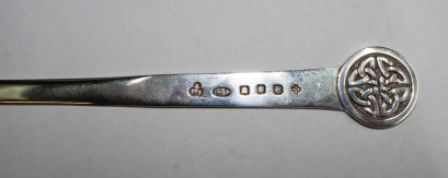 hallmarked Edinburgh 2000, maker: Payne & Son, with in relief Celtic knot decorated handle, approximate total weight 35 grams, in original fitted box -