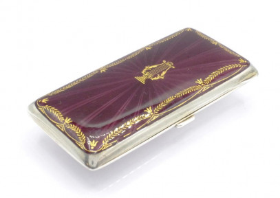 Lot Description:Antique enamel & silver cigarette case (lyre)