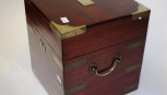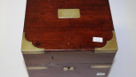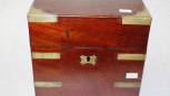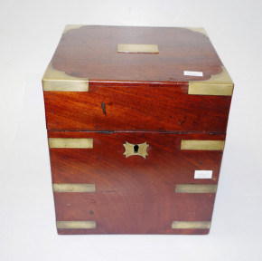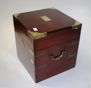 military type apothecary box, brass bound mahogany, with brass handles, (width 20cm; height 22.5cm approx). -