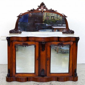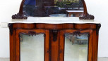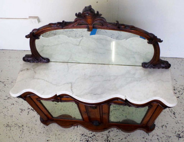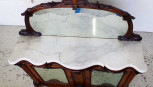 with marble top, 135cm wide, 37cm deep, 147cm high approx (chip to right door) -