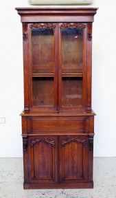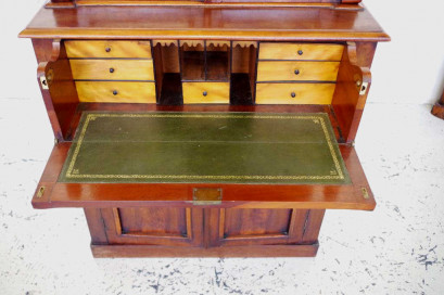 with 2 glazed doors above a secretaire desk and 2 door cabinet, 96cm wide, 42.5cm deep, 220cm high approx, divides into 3 parts for removal -
