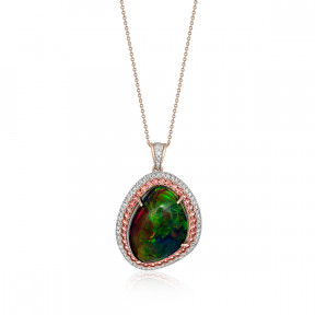 Lot Description:14ct pink gold, opal, orange sapphire and diamond pendant necklace