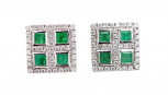 earrings, marked 750. Approx 10x10mm, Emeralds 0.45ct, 82x diamonds. item weight 4.2 grams 1270050 -