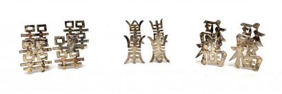 Lot Description:Three Pairs of Nanking Sterling Silver Chinese Exportware Chopstick Rests, Chinese Characters