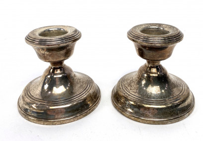 Lot Description:A Pair of Sterling Silver Weighted Candlesticks, W I Broadway & Co, Birmingham, 1955