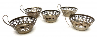 Lot Description:Five Sterling Silver Teacup Frames, Charles S Green & Co Ltd, Birmingham, 1910