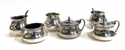 Lot #920 - A Mappin & Webb Silver Plate Cruet Set, Some with Blue Glass Liners