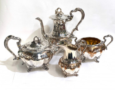 Lot Description:A Silver Plate Tea Service with Engraved Filigree Detail
