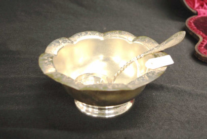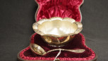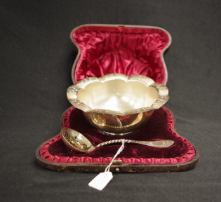 Lot Description:Vintage cased silver plate sugar bowl & spoon