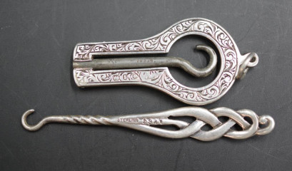 Victorian silver handled chatelaine button hook makers marks rubbed, 1890, Birmingham, length 8.5cm (extended), Chatelaine button hook, Birmingham 1899, Button hook marked sterling, Victorian chatelaine button hook with Scottish Aberdeen grey and rust granite, Birmingham 1893, Adie & Lovekin -