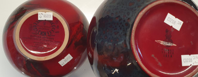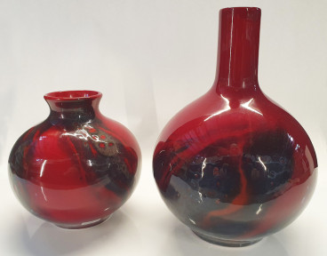'Lantao Vase in oriental Sung', number 122/350. height: 18 cm. Together with A ROYAL DOULTON FLAMBE VEINED VASE, height: 26 cm. (2) -