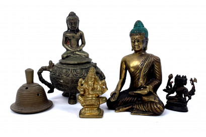 Lot Description:A Collection of Brass & Cast Metal Buddhist & Hindu Ceremonial Objects including a Footed Censer, 20th Century
