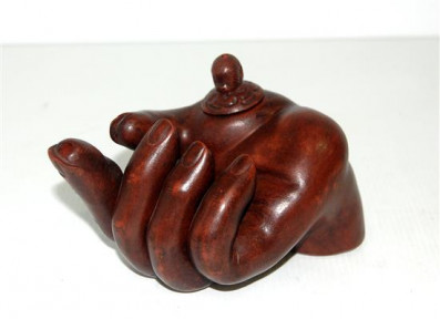 Lot Description:A Chinese Yixing Clay Hand Form Teapot with Monkey Head Knop Detail, 20th Century