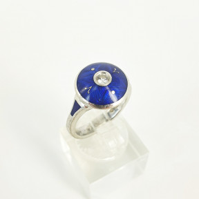Lot Description:A Diamond Blue Enamel And 18ct White Gold Ring
