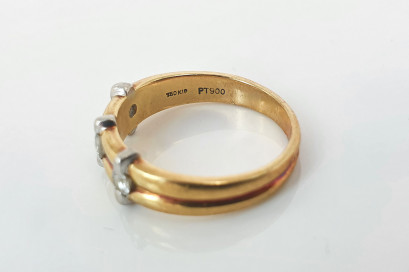 Lot Description:A Three-Stone Diamond And 18ct Two Tone Gold Ring