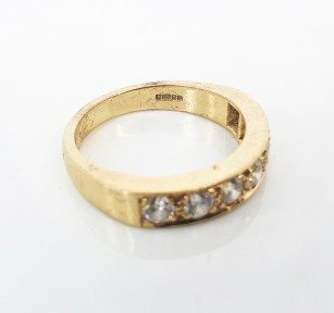 English hallmarked. Estimated total weight of diamonds 7=0.4ct. Weight 5.35g. Size N. -