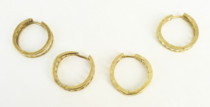 Lot #172 - Two Pairs of 9ct Gold And Cubic Zirconia Half-Hoop Huggies