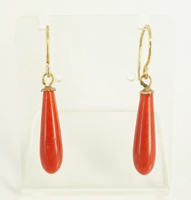 Lot Description:A Pair of Red Coral And 9ct Gold Drop Earrings