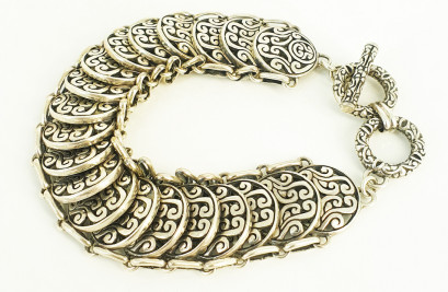 Lot Description:A Sterling Silver Overlapping Medallion Link Bracelet