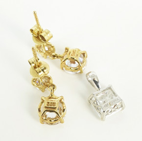 Lot #419 - A Pair of 14ct Yellow Gold And Cubic Zirconia Drpo Earrings