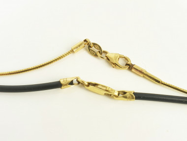 together with a neopr(broken) ene chain with 9ct gold clasp. Weight 4.1g. -