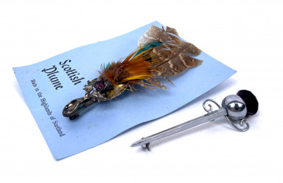 Lot Description:Two Scottish Silver Plate Brooches with Paste & Plume Thistle Detail