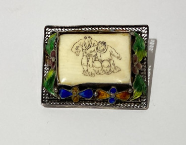 Lot Description:A Vintage Silver Filigree & Enamel Brooch, with Central Motif of Two Figures
