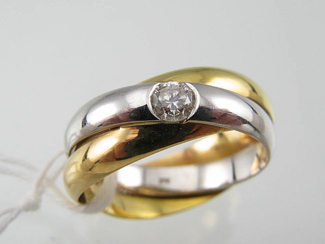 bezel-set in 18ct three-colour gold. Estimated weight of diamonds 0.20ct. Wt 7g. -