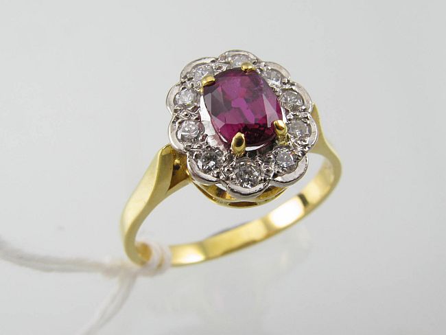 Lot Description:A Ruby And Diamond Oval Cluster Ring