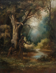 Aborigines Hunting by the Creek