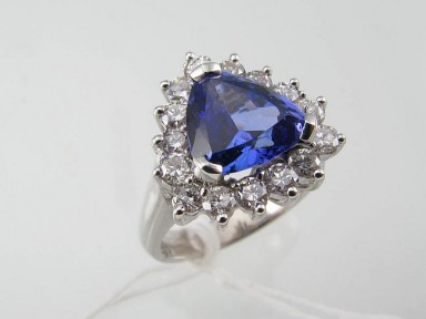 Lot Description:A Tanzanite And Diamond Border Triangle Cluster Ring