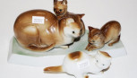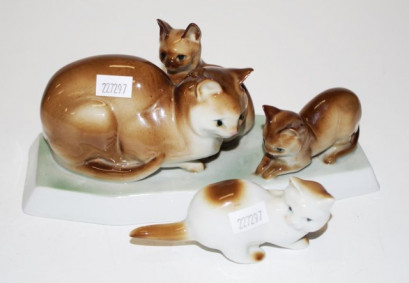 including one with a cat and 2 kittens, the other a kitten, width 20cm approx (widest) -