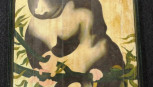 Lot Description:Chinese framed wooden panel of lemur image