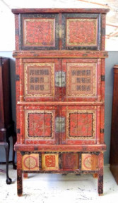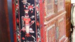 with carved and painted exterior, 106cm wide, 47cm deep, 217cm high approx -