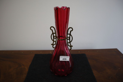 Lot #435 - Antique ruby glass vase with unusual, shaped body