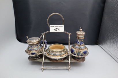 Lot #474 - Doulton Lambeth signed stone ware three-piece condiment set