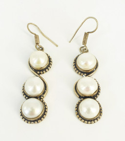 Lot Description:A Pair of Sterling Silver and Mabe Pearl Drop Earrings
