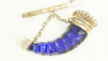 composed of a cut cobalt blue glass reservoir with sterling repoussÈ mounts and chain. Brooch - silver plated. Weight (all in) 14.1g. -