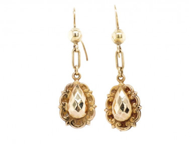 Lot Description:Edwardian 9ct rose gold faceted drop earrings