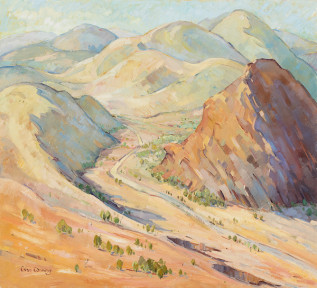 signed 'Criss Canning.' lower left; signed and inscribed '"BRACHINA GORGE - FLINDERS RANGES" / CRISS CANNING' verso (on stretcher) -