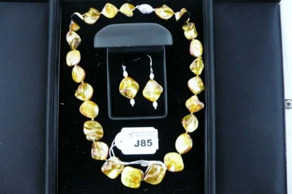 Lot #J85 - Yellow mother of pearl necklace and earrings
