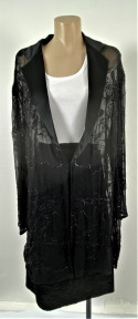 Lot Description:Unbranded: Black Chiffon Long-Line Evening Coat, Black Satin Lapels